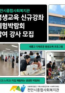 천안시종합사회복지관에서는 지역 주민들에게 다양하고 새로운 강좌를 선보이기 위해지역 강사님들의 신규 강좌들을 제언..