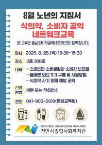 [8월 노년의 지침서] "식의약 소비자공익네트워크 교육" 참여자 모집1. 일시: 2025. 8. 28...