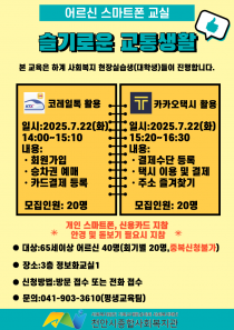 [7월 노년의 지침서] "스마트폰 활용 교육" 참여자 모집1. 일시: 2025. 7. 22.(화) 14..