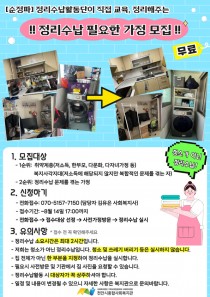 정리수납이 필요한 가정을 모집합니다!지역주민 중 정리수납에 어려움을 겪는 분들의 접수를 기다립니다!천안시종합사회복..