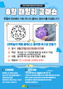[평생교육팀] 8월 천사인 패밀리 클래스 참여자 모집(과학놀이, 13~19년생 아동 및 보호자)