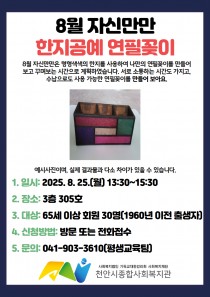 [8월 자신만만]"한지공예 연필꽂이 만들기" 참여자 모집1. 일시: 2025. 8. 25.(월) 13:30~15..